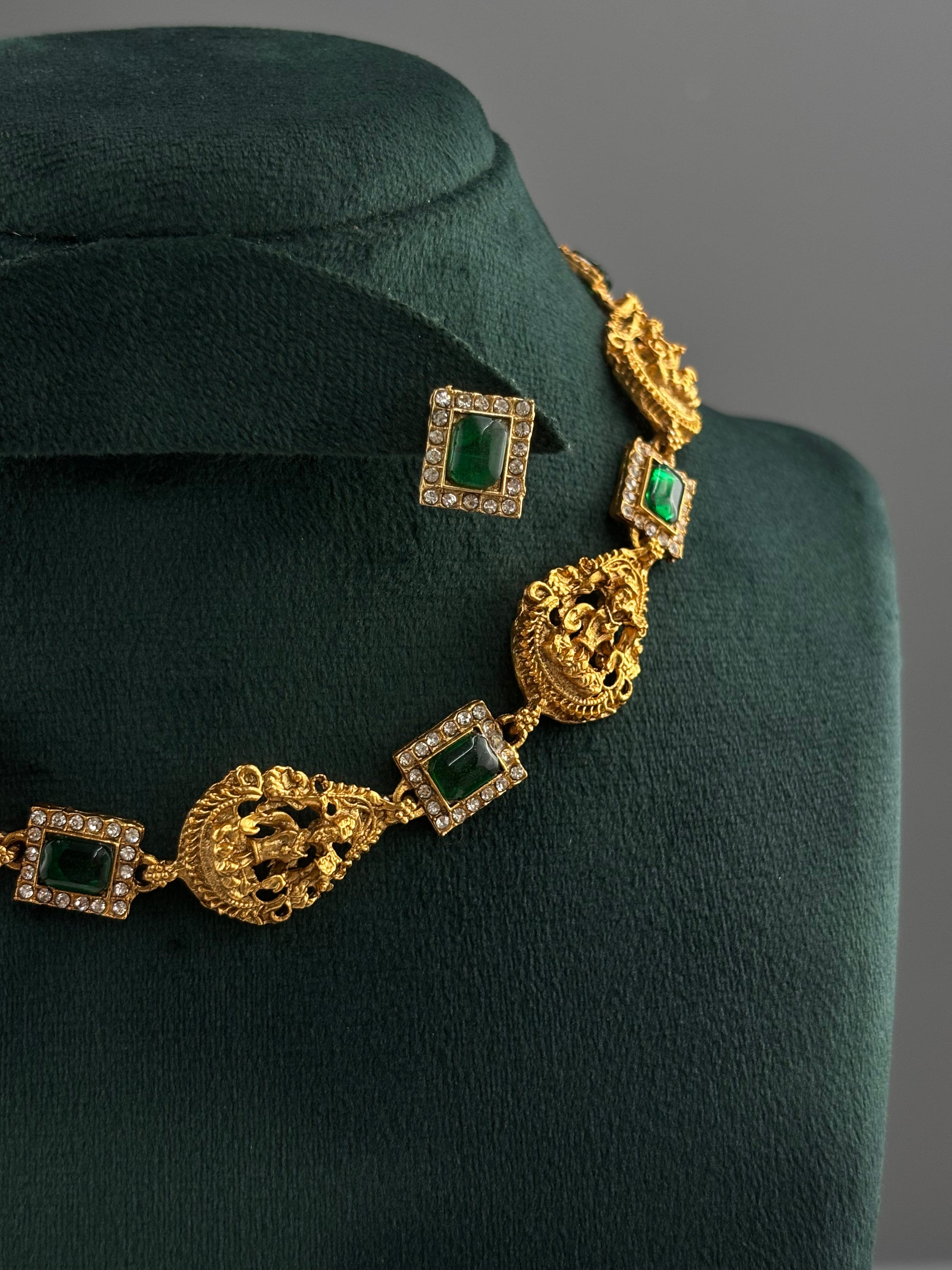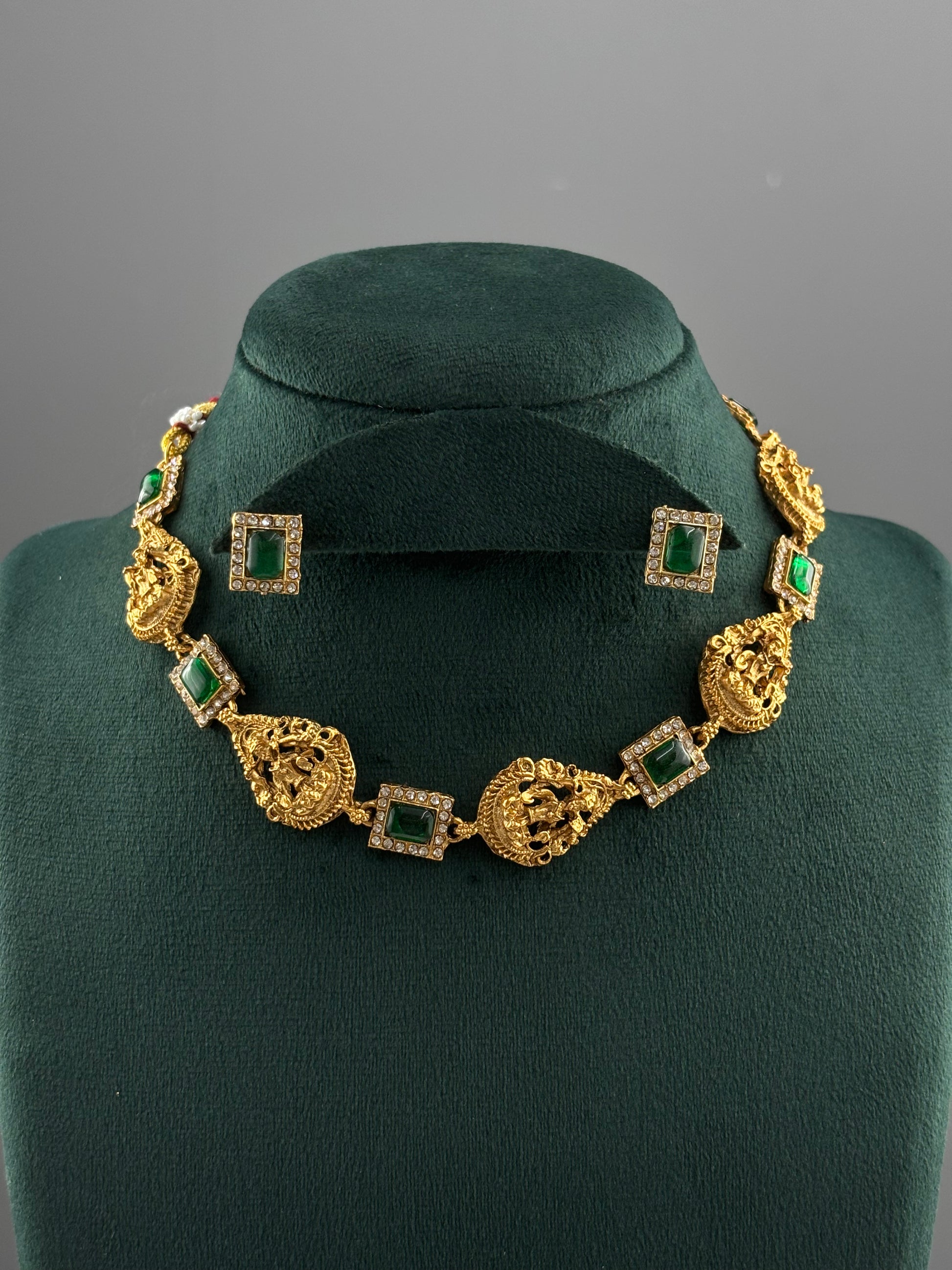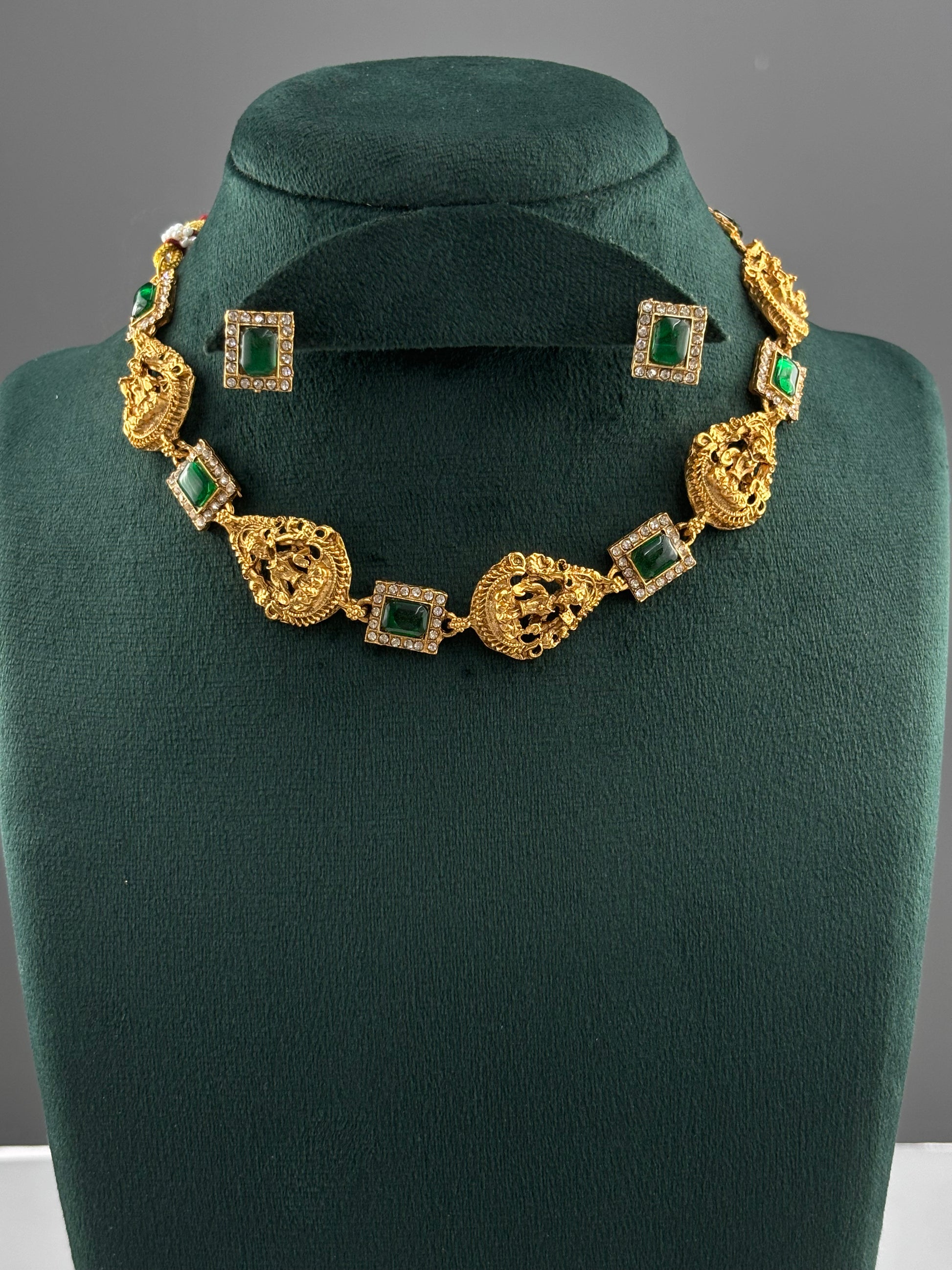 Antique Black gold finished goddess Lakshmi designed neckpiece set