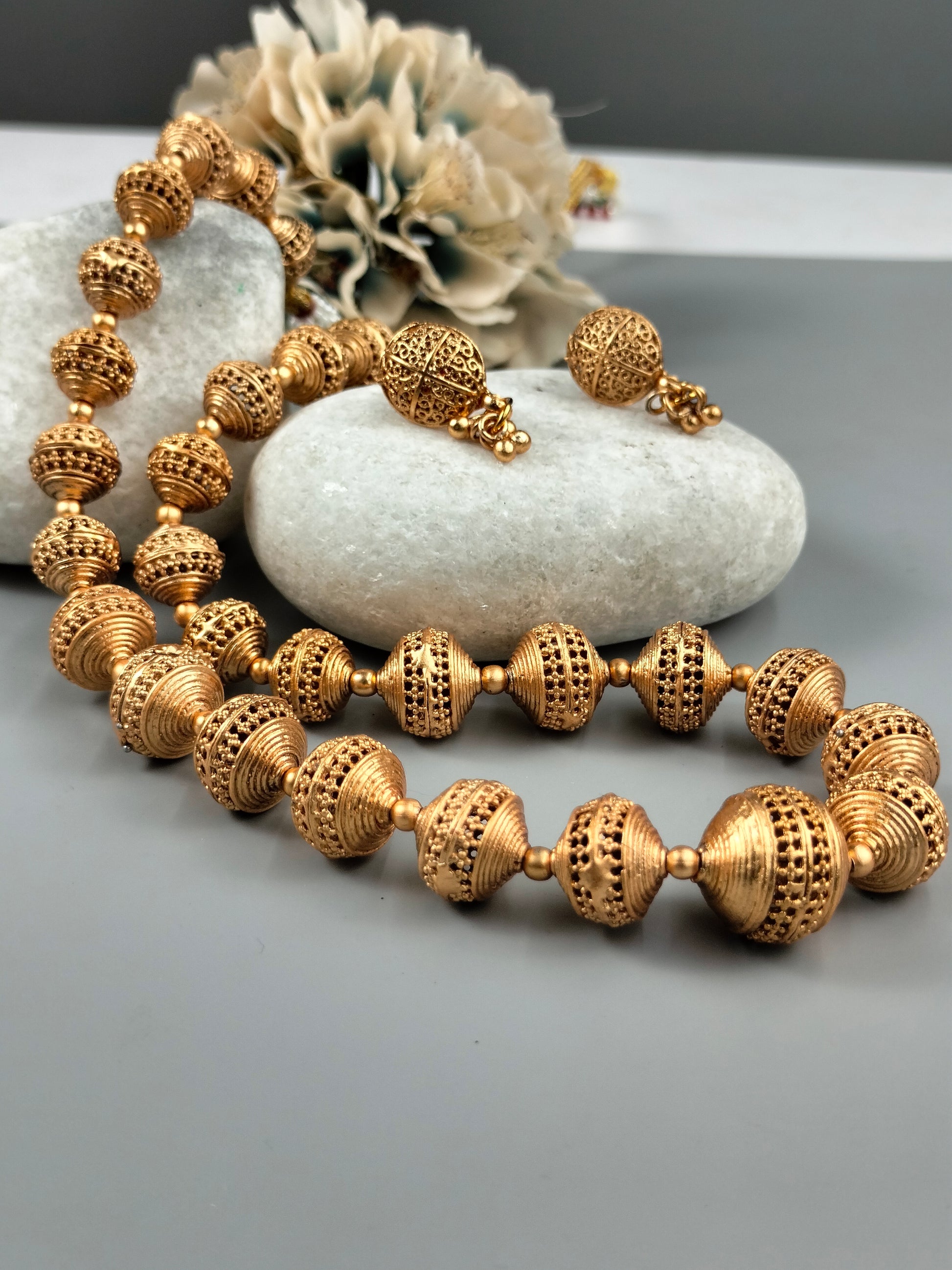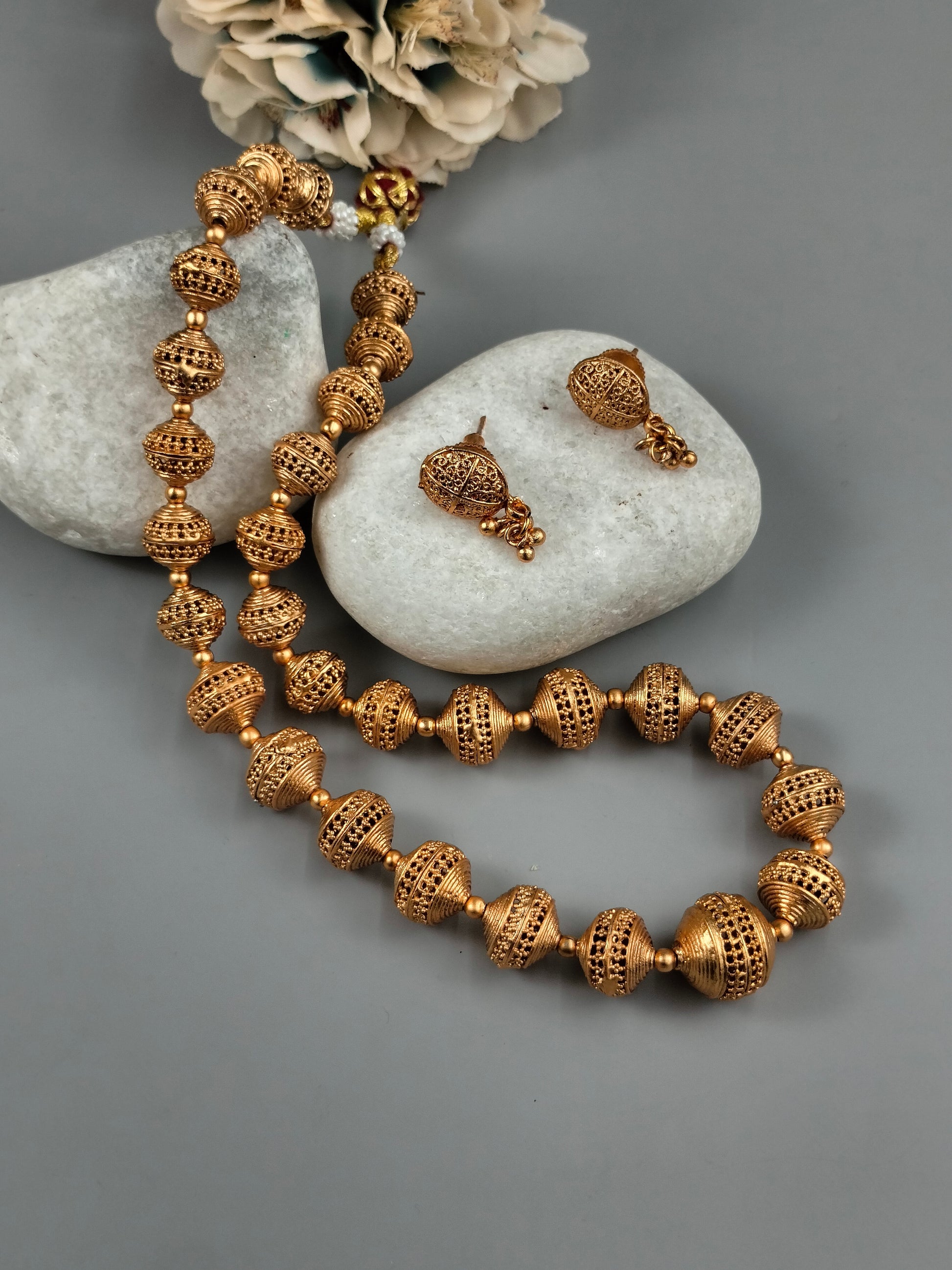 Traditional gold necklace with earring
