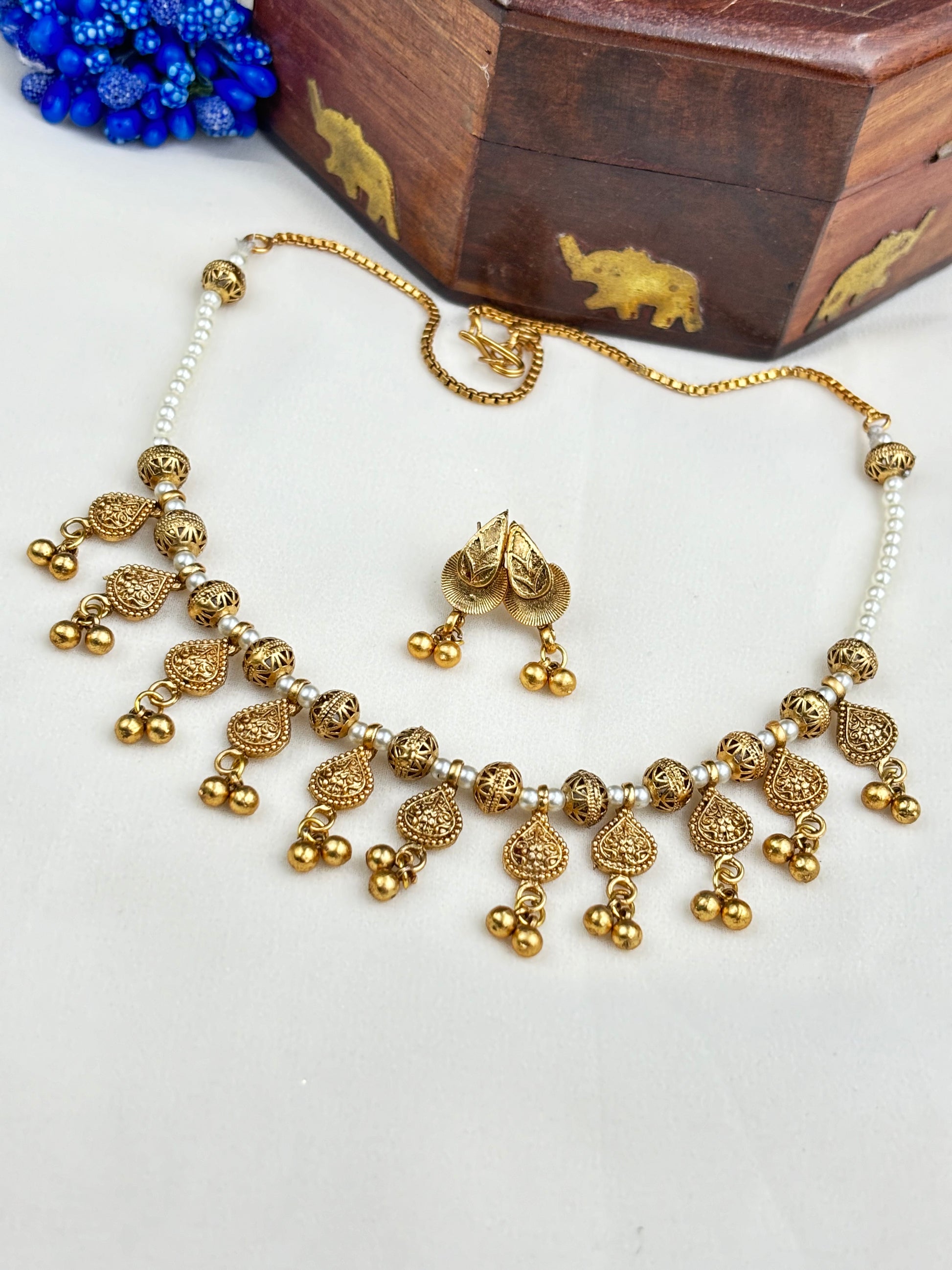 Gold toned necklace and earring set ,