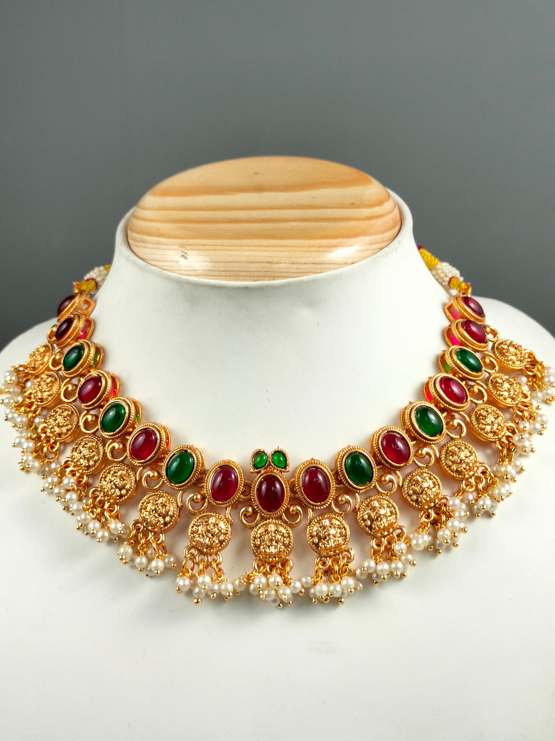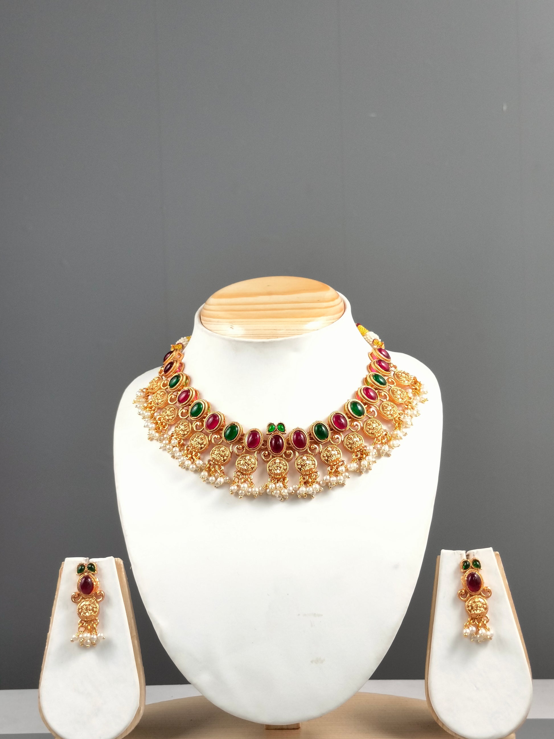 Traditional Necklace with Multi colour stones paired with earring